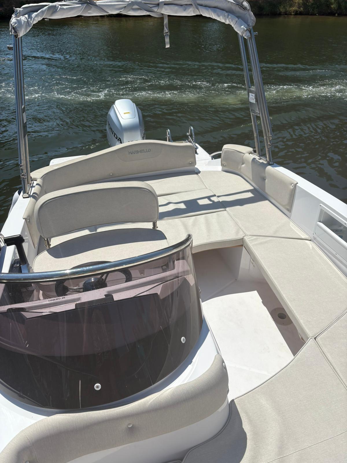 Ce bateau neuf est idéal pour les sorties aux Iles de Lérins, en baie de Cannes ou dans l’Estérel avec à son bord 6/7 personnes. Bateau très marin et très économique aussi bien à la location qu’en consommation d’essence. Motorisation idéale pour la bouée tractée.